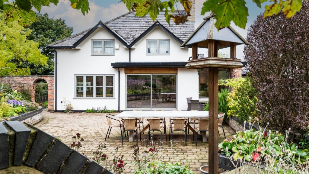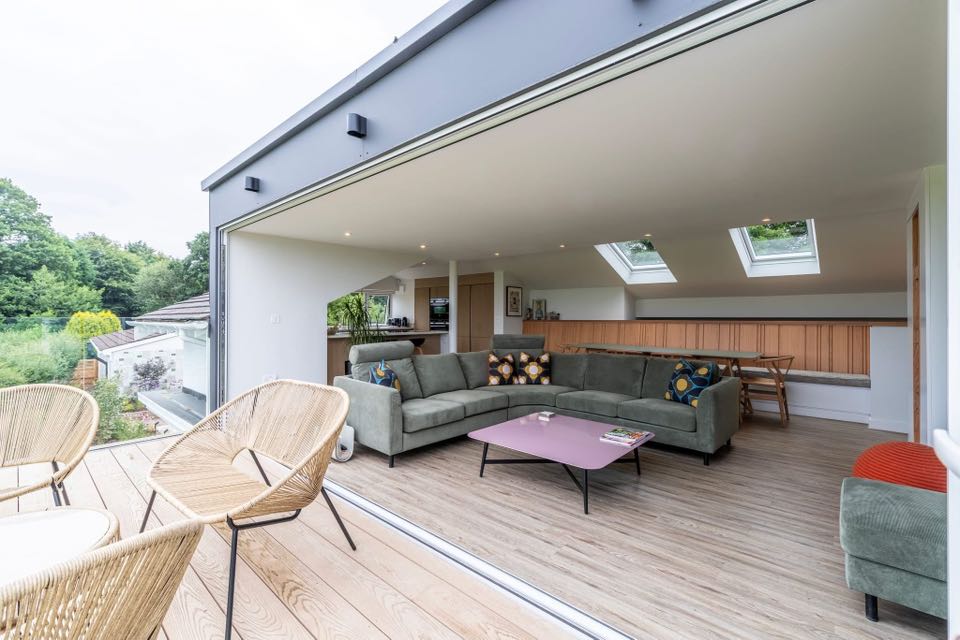 To support modern family living, a small side extension was constructed to relocate the kitchen, dining, and living area. This allowed the new open-plan space to sit adjacent to the sheltered side terrace, strengthening the connection between the house and the garden.